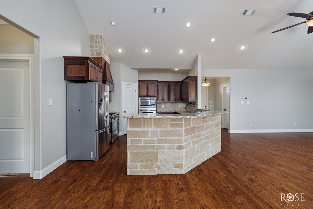 Welcome to this stunning 4-bedroom, 3-bathroom home nestled on 5 peaceful acres in the highly sought-after Wall school district. The open floor plan offers a perfect flow for entertaining, with vaulted ceilings and a spacious living area. The split-bedroom layout ensures privacy, with a luxurious primary suite as well as a optional secondary primary suite on one side and additional bedrooms on the other. A versatile study/game room with a full closet provides the flexibility of a potential fifth bedroom. The kitchen offers a gas stove, double oven, and plenty of cabinet space. Zoned air conditioning keeps the home comfortable year-round. Don't miss this opportunity for space and style in a prime location!